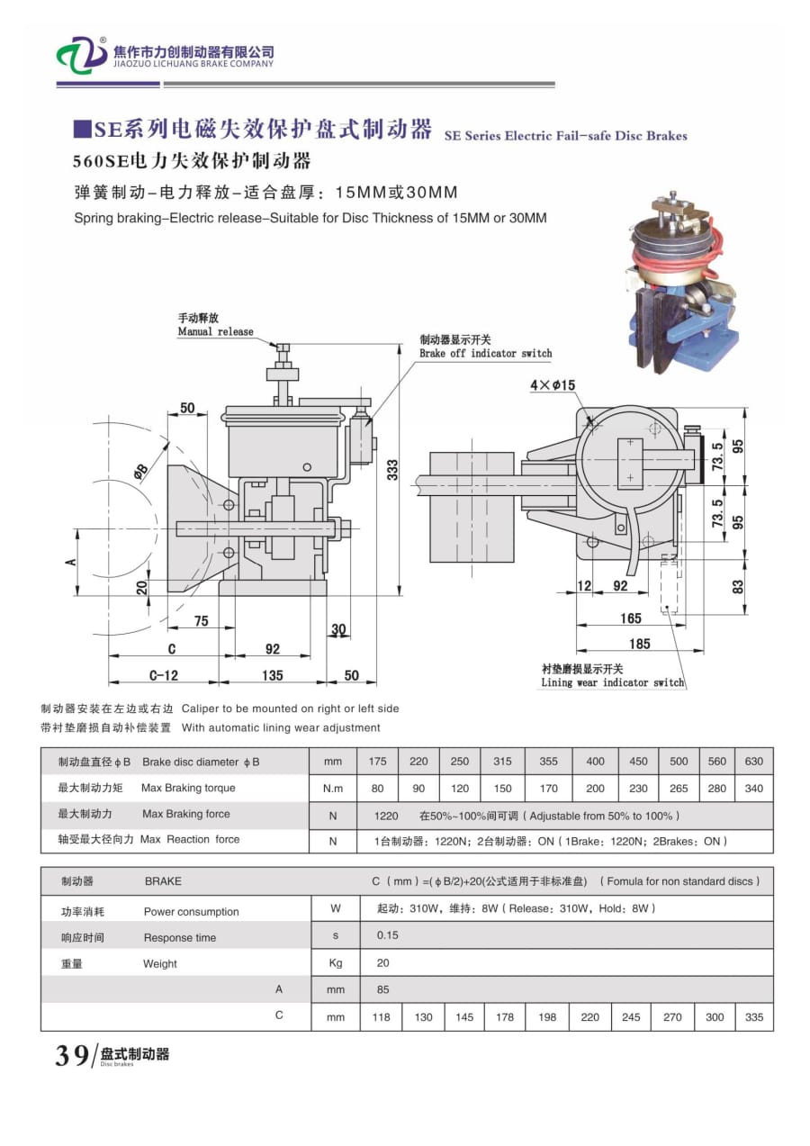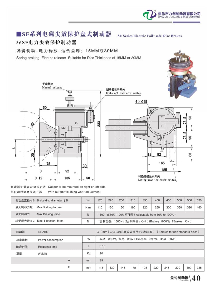 SE系列電磁失效保護(hù)盤(pán)式制動(dòng)器